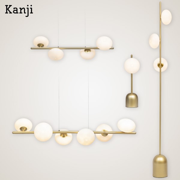 Kanji 6 Light Gold Pendant Light